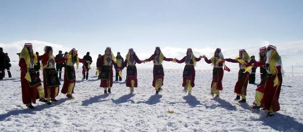 Buzla kaplı gölde atlı kış şöleni