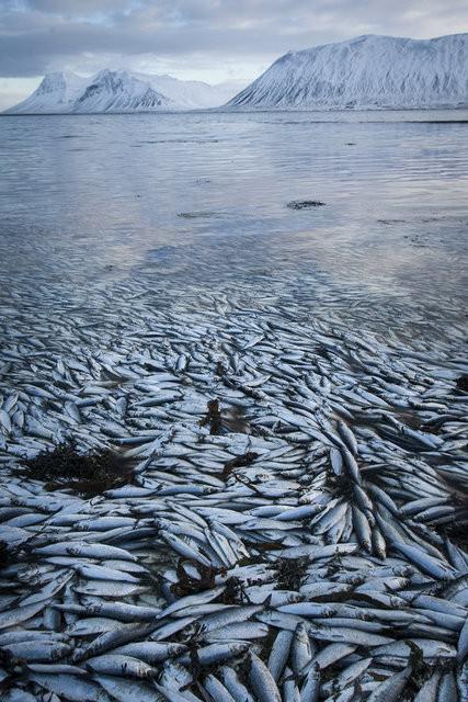İzlanda'da büyük bir çevre felaketi yaşanıyor. Ülkenin kuzeyinde yer alan Kolgrafafjororur Gölü kıyısına yaklaşık 25-30 bin ton arası ölü ringa balığı vurdu. Snaefellsnes yarımadasında bulunan gölün kıyısına vuran ölü balıkların oksijensiz kaldığı tahmin ediliyor