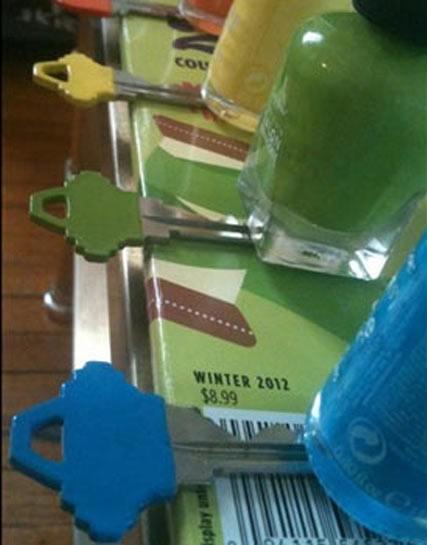Hepsi aynı marka olduğu için doğru anahtarı bulana kadar kapı önünde vakit kaybediyorsanız, ojeyle onları farklı renklere boyamanız yeterli. Oje anahtarın üzerine yapışır ve kolay kolay çıkmaz.