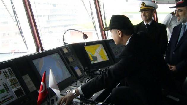 Erdoğan 'Barbaros' gemisinin dümenine geçti