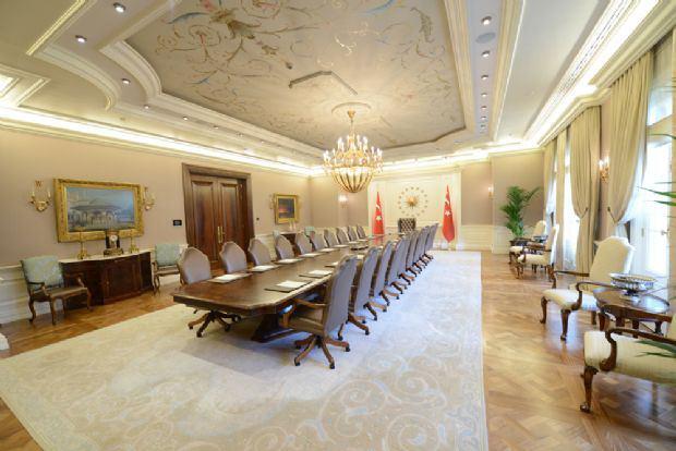 Kırmızı salon (Yeni hali) Resmi kabullerin kırmızı salonu Kırmızı Salon’un 1980’lerden kalma koltukları yerini, daha modernlerine bırakmış. Krem rengi halı, tavan spotları, şık perdeler ve Cumhurbaşkanlığı Forsu da salona ayrı bir hava katıyor.
