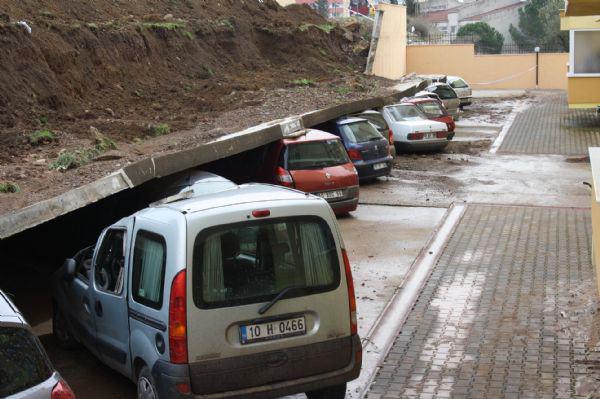 İstinat duvarı 15 aracın üstüne yıkıldı