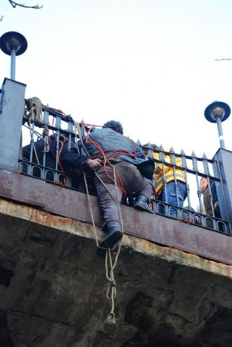 Bursa'da 12 yıl içinde Setbaşı Köprüsü'ne intihar etmek için 2 kez çıkan 42 yaşındaki A. D., yeniden aynı yerde atlamak istedi. Ancak polisler A.D'yi intihar girişiminden kurtardılar ve düşmemesi için halatla korkuluklara bağladılar.