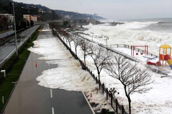 Karadeniz'de etkili olan fırtınada oluşan dev dalgalar, Rize'de Karadeniz Sahil Yolu'nu ulaşıma kapattı.