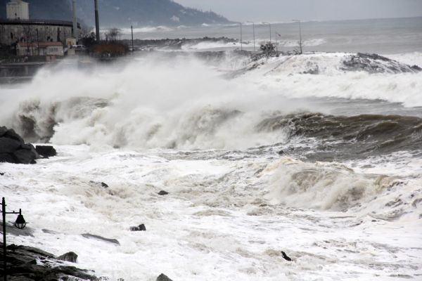 Karadeniz'de etkili olan fırtınada oluşan dev dalgalar, Rize'de Karadeniz Sahil Yolu'nu ulaşıma kapattı.