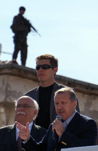 Havadan ve karadan yoğun güvenlik önlemleri altında gezisini sürdüren Erdoğan'ın halka hitap ettiği alan üzerinde ise sürekli polis helikopteri güvenlik uçuşu yaptı.