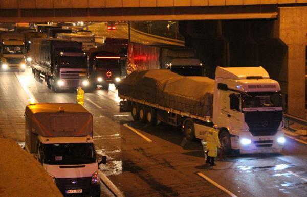 TEM'de kamyon yangını trafiği kilitledi