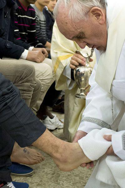 Katolik dünyasının lideri seçilip 'Francis' adını almadan önce Buenos Aires Başpiskoposu olan Jorge Mario Bergoglio, Paskalya haftasının kutsal perşembesinde yapılan ayak yıkama törenini cezaevleri, hastaneler ve yardıma muhtaç insanların bakıldığı merkezlerde düzenliyordu.