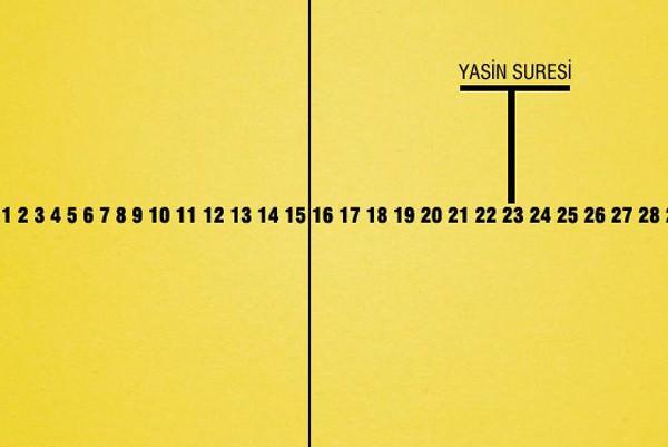 Arapça rakamların sağdan sola yazıldığını düşünürsek. 23.Cüz Kuran`ın tamamı düşünüldüğünde konum olarak sol tarafa yaslanmış ama ortaya daha yakın şekilde duruyor.