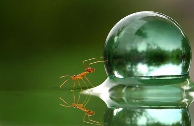Karınca ve su damlası Yakın çekim fotoğrafların en başarılı örnekleri.