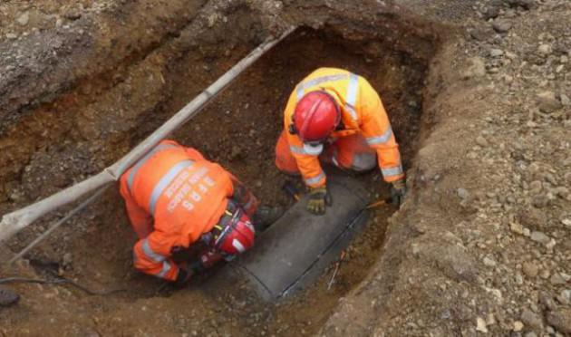 Kanalizasyon borularına giren köpek, saatler süren çalışmanın sonunda böyle kurtarıldı.