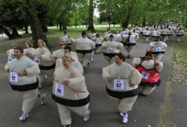 Londra´da Sumo kıyafetleriyle 5 kilometre koşu yapan en kalabalık grup.