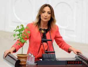 CHP Milletvekili Aylin Nazlı Aka, 71 darbesinde idam edilen Deniz Gezmiş ve arkadaşları için Meclis'te fidanlı eylem yaptı.