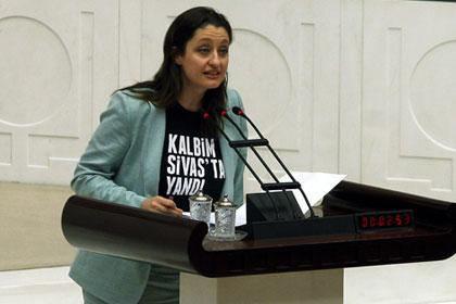Sivas davasının 19 yıl sonra düşmesine dikkat çekmek isteyen CHP’li Şafak Pavey, Meclis kürsüsüne ”Kalbim Sivas’ta yandı” yazılı tişörtle çıktı.