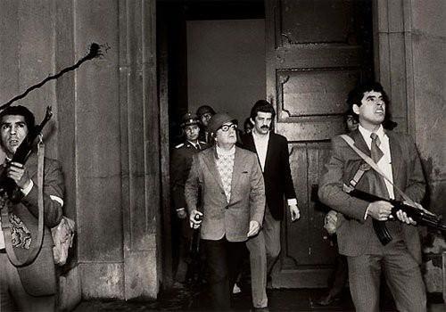 Şili'de demokratik seçimle gelen Başkan Salvador Allende'nin askeri darbe sırasında ölümünden birkaç saniye öncesi. Fotoğrafı çeken kişinin "kişisel güvenliği" için adının açıklanmasını istemediği sanılıyor.
