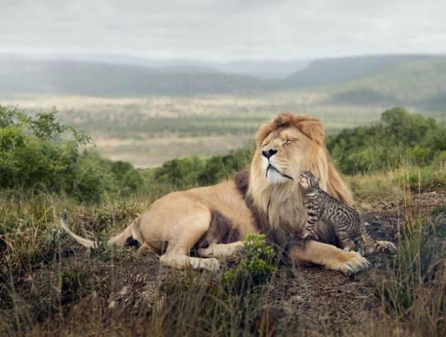 İskoç fotoğrafçı George Logan "büyük kedi, küçük kedi" reklam kampanyası kapsamında doğal yaşamla evcil yaşamı birleştirdi.