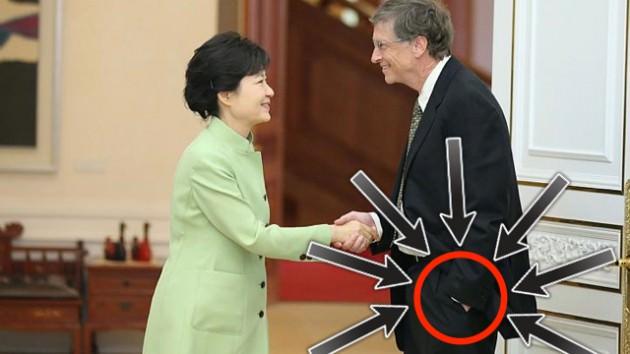 Gates'in, Güney Kore Devlet Başkanı Park Geun-hye ile tokalaşırken diğer elini cebinden çıkarmaması ülkede 'örf ve geleneklere saygısızlık' olarak yorumlandı.