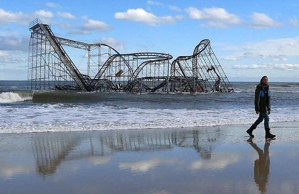 New Jersey'de kasırga sonrası bir roller coaster yıkılırken.