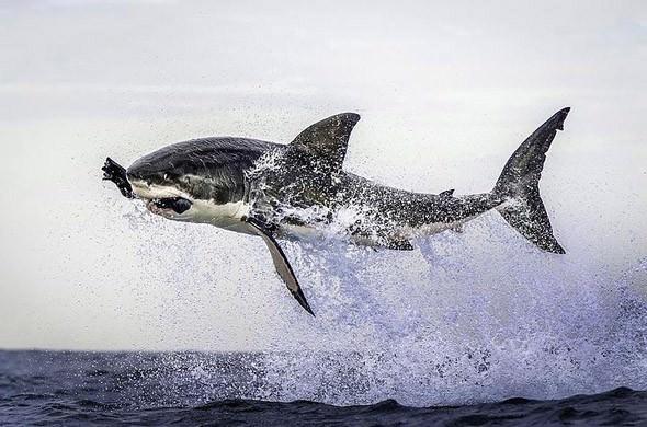 Güney Afrika'da bir köpek balığının avlanma anı.