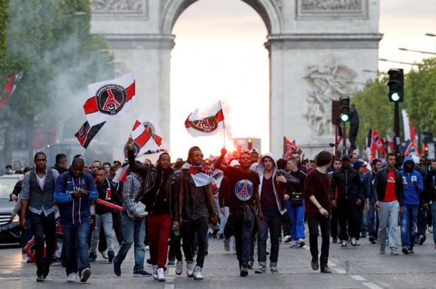 Olaylar Paris-Saint-Germain futbolcularının kupayı almak için meydanda kurulan podyuma çıktıkları anda patlak verdi.