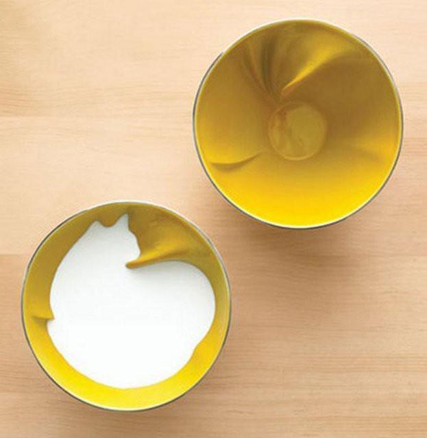 İçi sıvı ile doldurulduğunda kedi silüeti oluşan kase