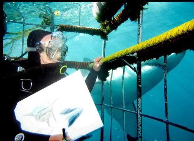 Köpekbalığını çizmek için her gün bunu yapıyor