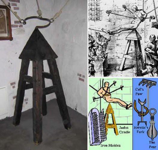 Yahuda kızağı En dehşet verici tekniklerden bir tanesi. Suçlunun anüsü veya kadınsa eğer vajinası piramid şekilli bir üçgen taburenin üzerine gelecek şekilde yerleştiriliyor. Suçlu yukarıdan aşağıya baskı yapacak bir şekilde iplerle bağlanıyor. Çıplak olan suçlunun ayaklarına da ağırlık bağlanıyor. Sonuç acı çekerek ve birkaç gün sürünerek ölüm!