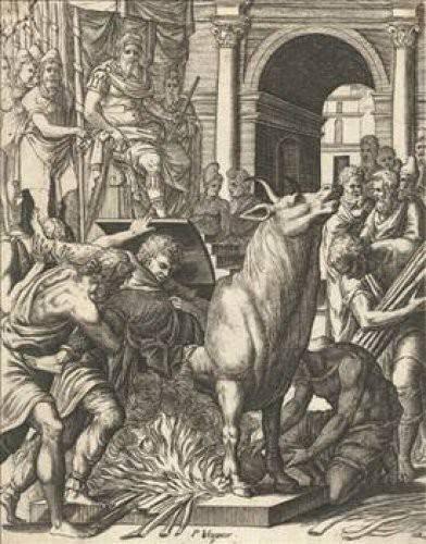 PİRİNÇ BOĞA (SİCİLYA BOĞASI) Antik Yunanistan da icat edilen bir tür işkence aleti. Pirinç dökümcüsü Atina'lı Perillos, Agrigentum Tiran'ı Phalaris için yeni bir suçlu öldürme yöntemi icadı olarak, tamamen pirinç'ten içi boş ve bir tarafında kapı bulunan bir boğa yaptı. Kurban boğanın içine kapatılıyor ve sonra boğa altına yerleştirilen ateşle metalin rengi sıcaktan kırmızaya dönene kadar ısıtılıyor, böylece kurbanın içeride yavaşça kızararak ölmesi sağlanıyordu. Boğanın başı, karmaşık bir sistemle tüp ve tapalarla yapılmıştı ve böylece mahkumların çığlıkları kızmış bir boğa böğürmesine dönüştürülebiliniyordu. Söylendiğine göre boğa tekrar açıldığında, kurbanın kavrulmuş kemikleri mücevher gibi parlıyordu ve bunlardan kolye yapılıyordu.