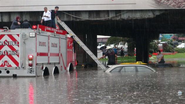 Fatih ve Beyoğlu’nda şiddetli yağmur nedeniyle çok sayıda araç su altında kaldı. Araçların tavanına çıkarak kurtarılmayı bekleyen vatandaşların yardımına itfaiye ekipleri yetişti. İtfaiye ekiplerinin yardımıyla mahsur kalanlar kurtarıldı.