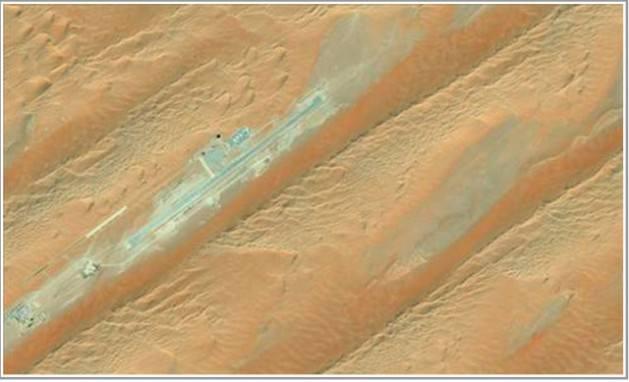 Microsoft'un Bing Maps hizmetinde fotoğrafları görülebilen uydu fotoğrafları, dikkatli inceleme yapıldığında neredeyse tespit edilmesi imkansız olan üssü gösteriyor.