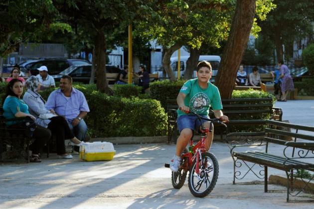 Suriyeli çocuk bisikletiyle turluyor.