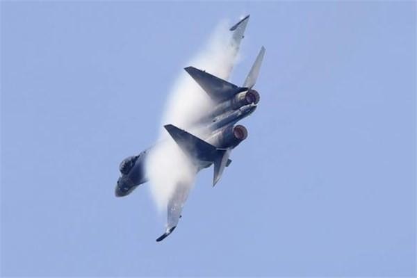 Başka bir savaş uçağı olan Sukhoi Su-35 yine gösteri uçuşunda.