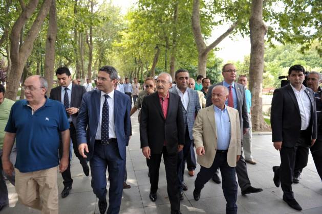 CHP Genel Başkanı Kemal Kılıçdaroğlu Gezi Parkı'nda. Kılıçdaroğlu, CHP İstanbul İl Başkanı Oğuz Kaan Salıcı ve Kadıköy Belediye Başkanı Selami Öztürk ile birlikte Gezi Parkı'na geldi.