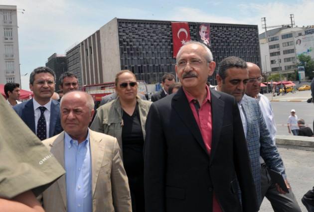 CHP Genel Başkanı Kemal Kılıçdaroğlu Gezi Parkı'nda. Kılıçdaroğlu, CHP İstanbul İl Başkanı Oğuz Kaan Salıcı ve Kadıköy Belediye Başkanı Selami Öztürk ile birlikte Gezi Parkı'na geldi.