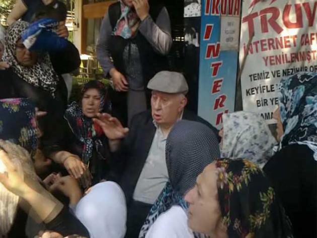 Eyüp'te yaşlı bir adam, cami çıkışında para dağıtmak isteyince kalabalığın arasında zor anlar yaşadı. O anlar amatör kamera tarafından görüntülendi.