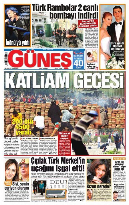 Mısır katliamı gazete manşetlerinde!