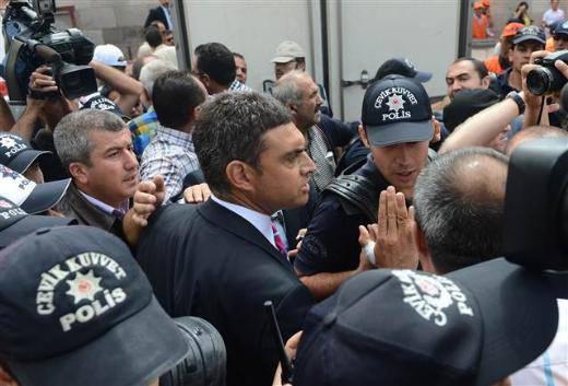 Bu arada törende bulunan CHP Genel Başkan yardımcısı Umut Oran da olaya müdahalede bulunarak yükselen tansiyonu düşürmeye çalıştı.