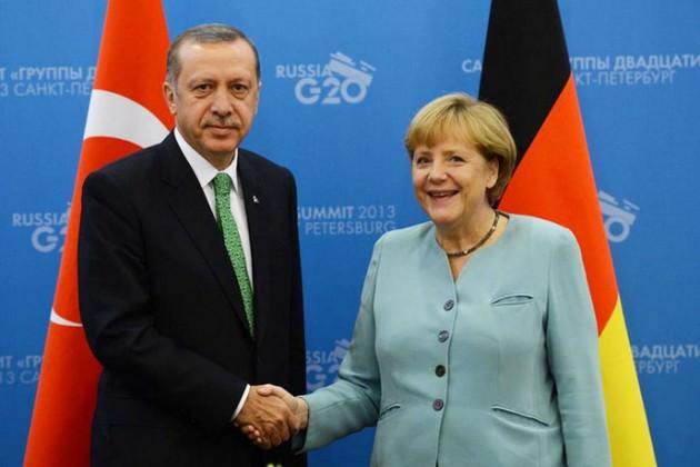 Erdoğan ve Merkel daha sonra başbaşa görüşmeye geçti. Basına kapalı gerçekleşen görüşme, yaklaşık 45 dakika sürdü.