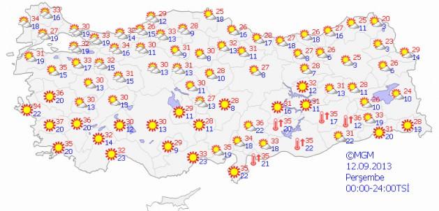 HAVA SICAKLIĞI :Kuzey, iç ve batı bölgelerde 1 ila 3 derece artacağı tahmin ediliyor.