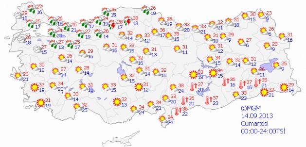 RÜZGAR :Marmara ve Karadeniz kıyılarında doğu ve kuzeydoğu, Akdeniz kıyıları ile zamanla Güneydoğu kesimlerde batı ve güneybatı, diğer yerlerde kuzey ve kuzeybatı yönlerden hafif, ara sıra orta kuvvette, eseceği tahmin ediliyor.