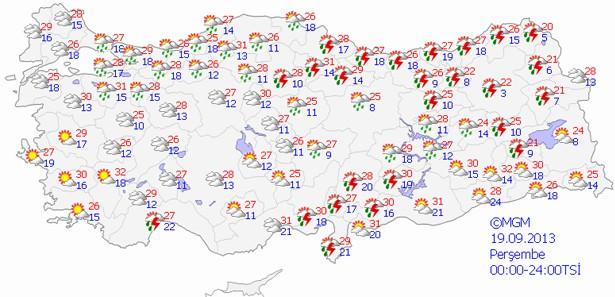 RÜZGAR :Kuzey ve batı, yurdun güneydoğu kesimleri ve Akdeniz kıyıları ile zamanla batı bölgelerde güney ve batı, Marmara'da gece ve sabah saatlerinde güney ve doğu yönlerden hafif ara sıra orta kuvvette, Güney Ege kıyılarında yer yer kuvvetli olarak (30-60 km/saat) eseceği tahmin ediliyor.