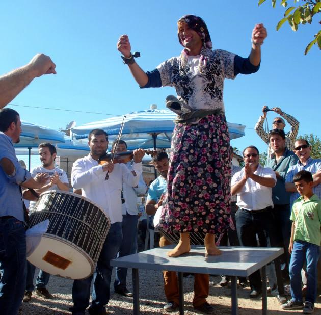 Çanakkale'nin Ezine ilçesine bağlı Kumburun köyündeki yaklaşık 500 yılık düğün geleneğinde, damada kadın elbiseleri giydiriliyor, davul ve klarnet eşliğinde oynatılıyor, gelinin önünde çamaşır yıkatılıyor.