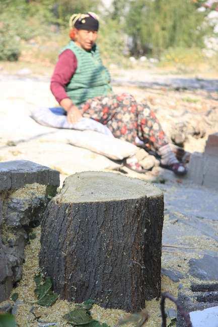 Kesilen ağaçların parçaları ise ev sahiplerine verildi.