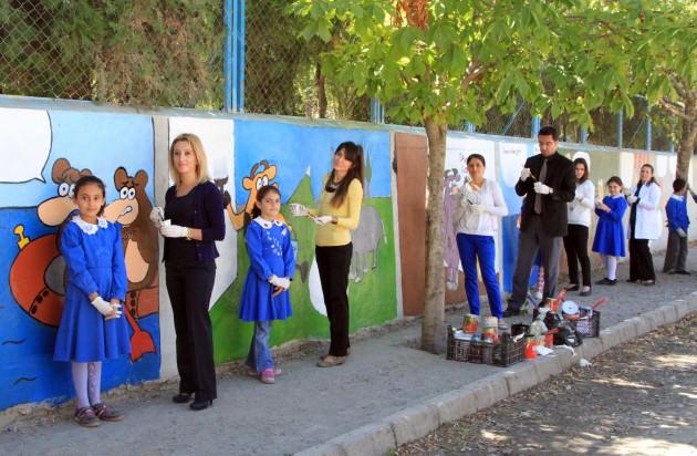 Köy okulunu karikatürlerle donattılar
