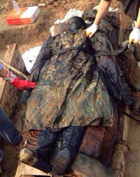 Çin'de yapılan arkeolojik bir kazıda bulunan 300 yıllık bir mumya, tabutun kapağını açar açmaz, oksijenle temas etmesi nedeniyle yaklaşık 1 saat içinde simsiyah oldu.