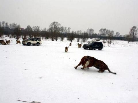 Bakıcıların ciplerini görür görmez harekete geçen dünyanın en büyük kedileri...