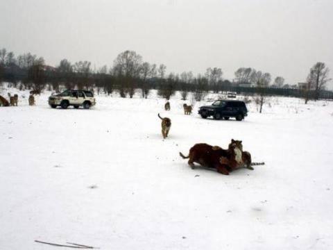Canlı bırakılan inek ve tavukları parçalayarak yiyor. Tabii bu seyrin de bir ücreti var.