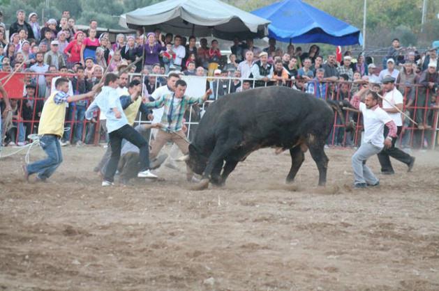 Aydın’ın İncirliova İlçesine bağlı Köprüovası köyünde bu yıl ilk defa düzenlenen boğa güreşleri renkli geçerken güreşlerde zaman zaman İspanya´yı aratmayacak görüntüler ortaya çıktı.