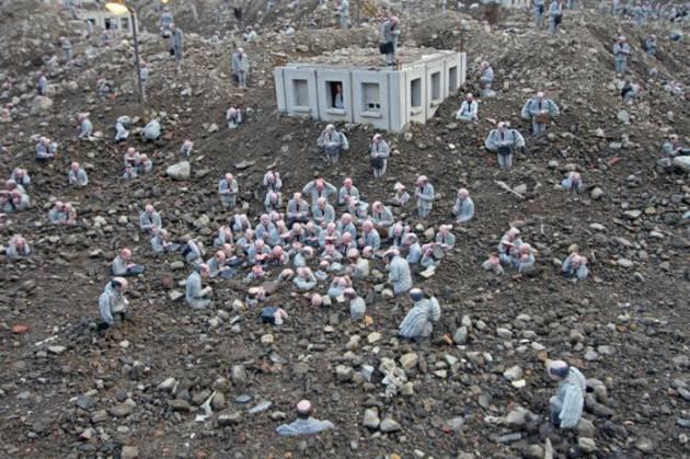 2000 üzerinde parçadan oluşan minyatür şehirde bulunan beton binalar, lambalar ve firgürlerin her biri çakıl taşından yapılmıştır.