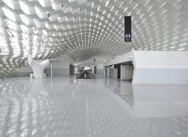Işığı yansıtan yüzey, tavanla birlikte sürekli aydınlık olan bir iç ortam yaratıyor.